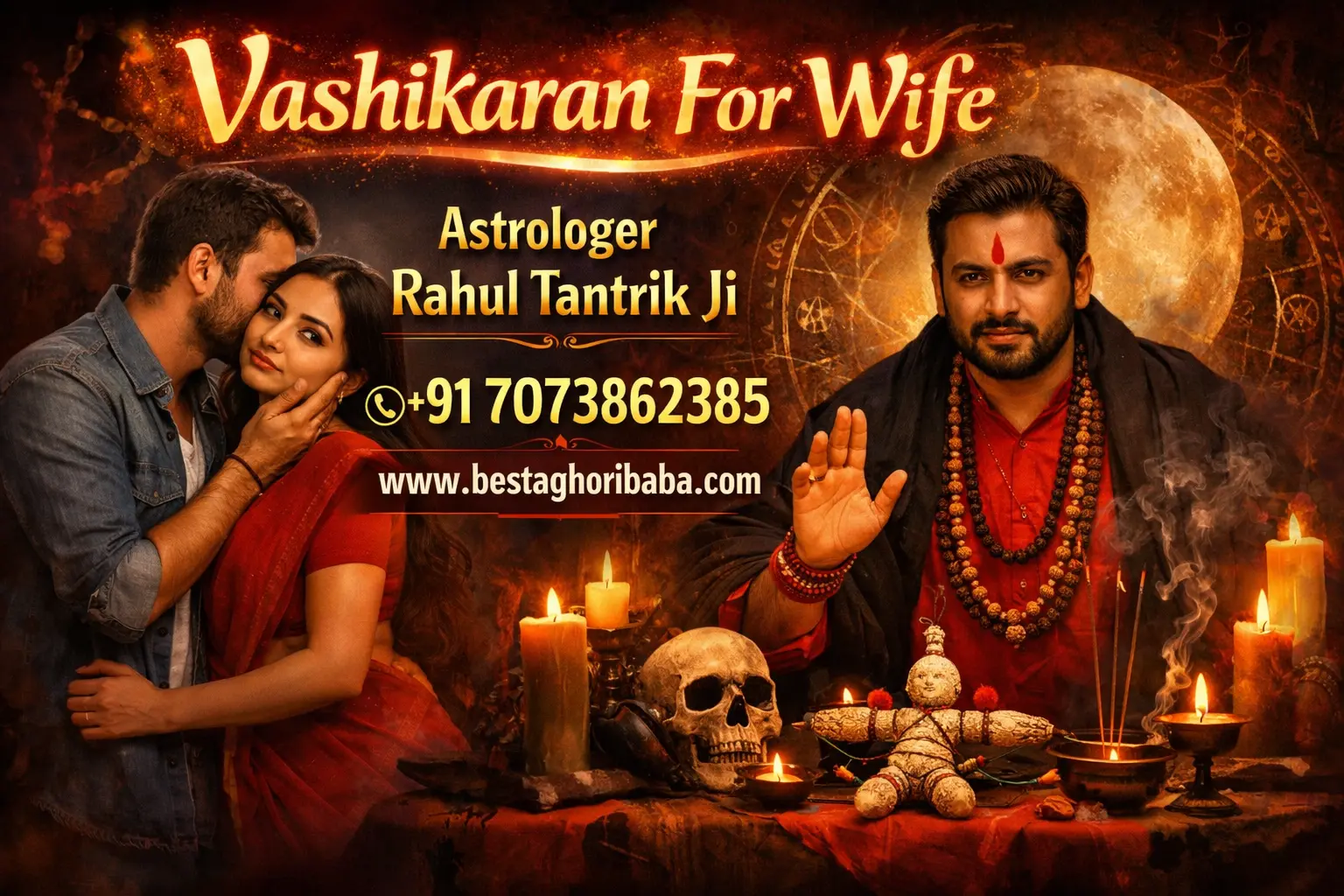 Sometimes the entry of a third party into love changes everything. Suspicion, jealousy, and insecurity erode the relationship from within. This is the problem faced by many of the cases that come to Love Vashikaran Aghori Baba in Kolkata. Astrologer Rahul Tantrik Ji explains that not every problem can be solved by aggressive measures. He first recommends spiritual practices to increase mental peace and self-confidence. When a person becomes stronger, the situation begins to change. According to him, Aghori Sadhana not only eliminates external obstacles but also internal fears. This is why people who come to him leave with not only love but also self-confidence.
